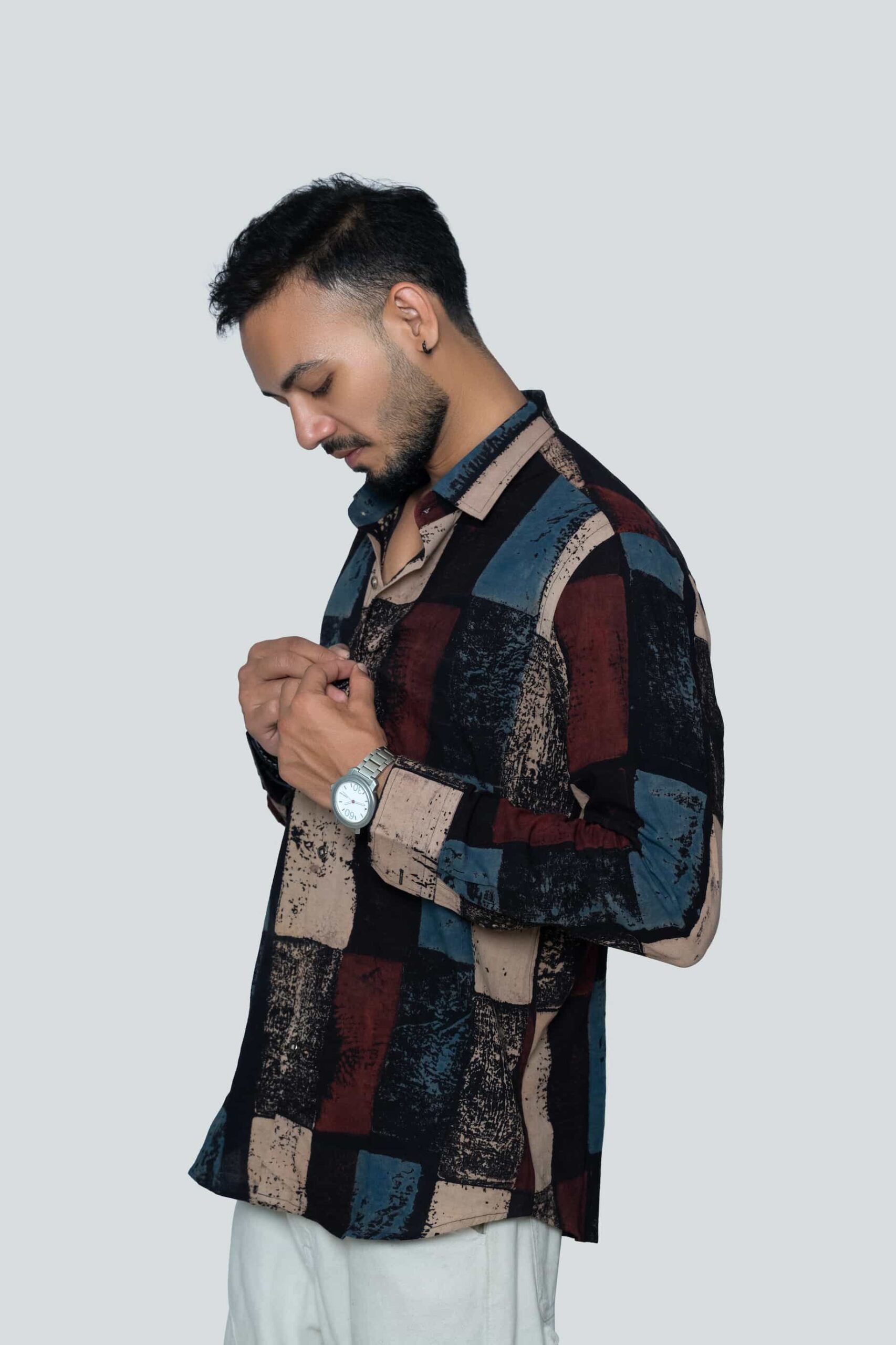 The textured brush-stroke effect adds depth and character, making it perfect for statement shirts that command attention. Ideal for casual wear, party styling, or standout fashion pieces.